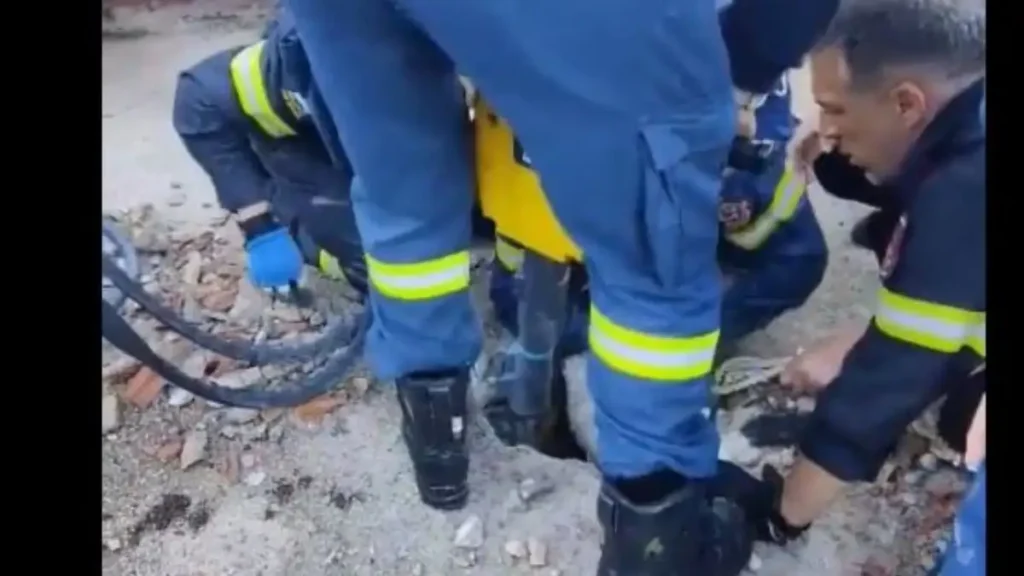 Οι πυροσβέστες με χειρουργικές κινήσεις, πραγματοποίησαν μία μικρή τρύπα στο τσιμέντο της επιφάνειας και κατάφεραν να το προσεγγίσουν στην επιφάνεια αφού το βάθος ευτυχώς δεν ήταν μεγάλο.