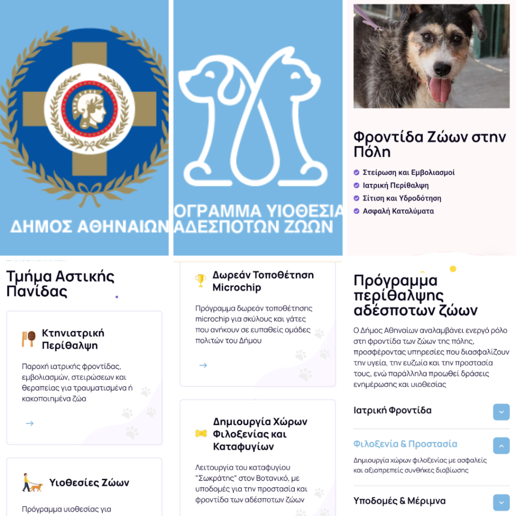 Ο ιστότοπος προσφέρει πληροφορίες για τις δράσεις του Δήμου, όπως υιοθεσίες, φιλοξενίες, στειρώσεις και εμβολιασμούς, καθώς και οδηγίες για την υπεύθυνη φροντίδα των ζώων.
