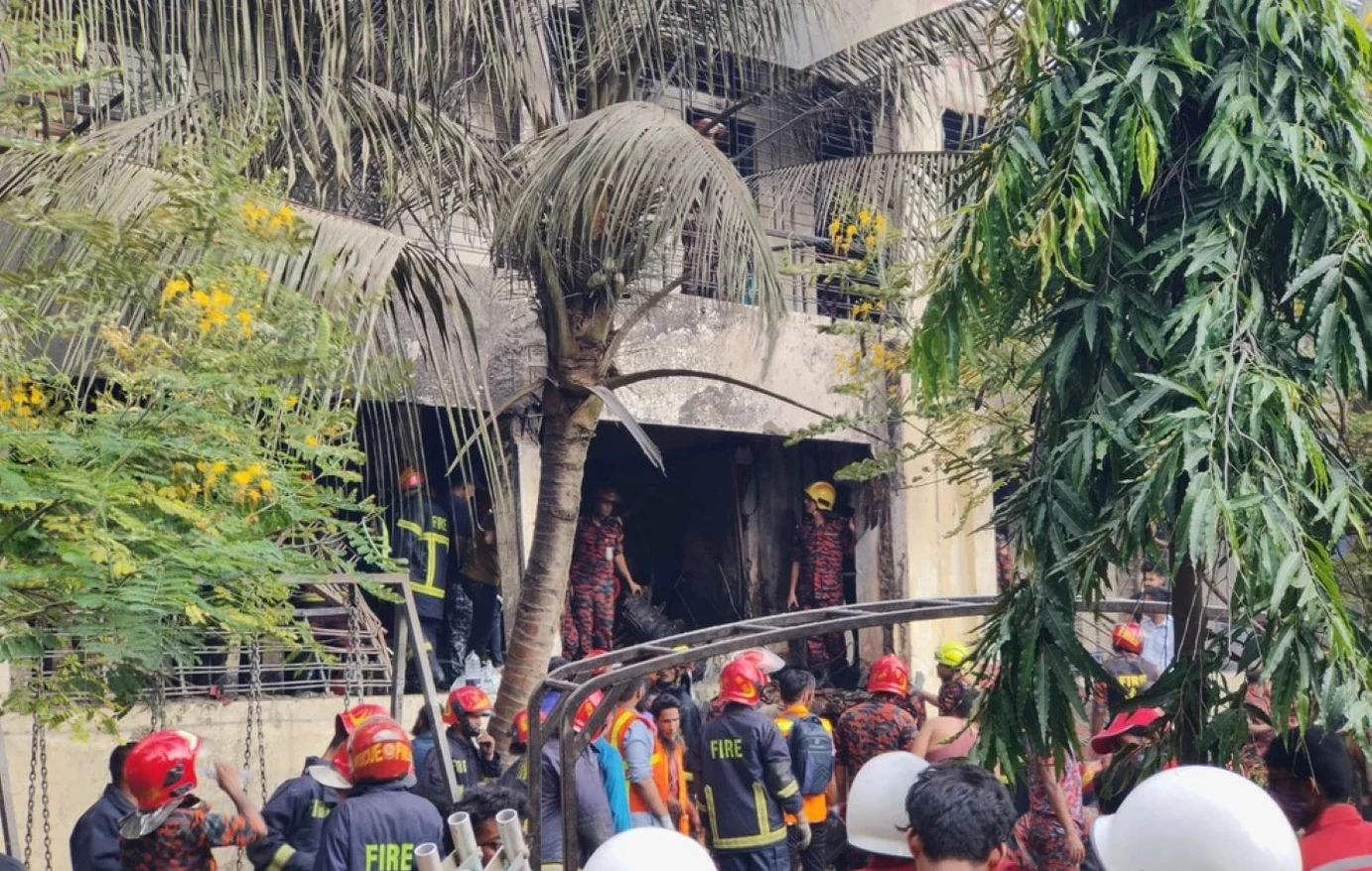 Πολλοί μαθητές στο κτίριο όπου συνετρίβη το μαχητικό υπέστησαν πολύ σοβαρά εγκαύματα και εισήχθησαν στο τμήμα επειγόντων περιστατικών εθνικού ινστιτούτου για εγκαυματίες στη Ντάκα.