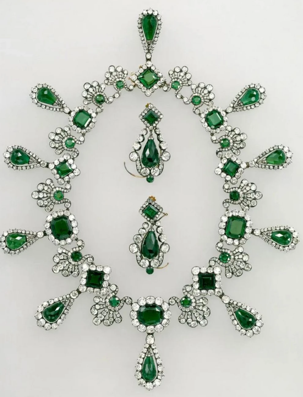 Ένα σμαραγδένιο κολιέ και ένα ζευγάρι σμαραγδένια σκουλαρίκια της αυτοκράτειρας Μαρίας Λουίζας.