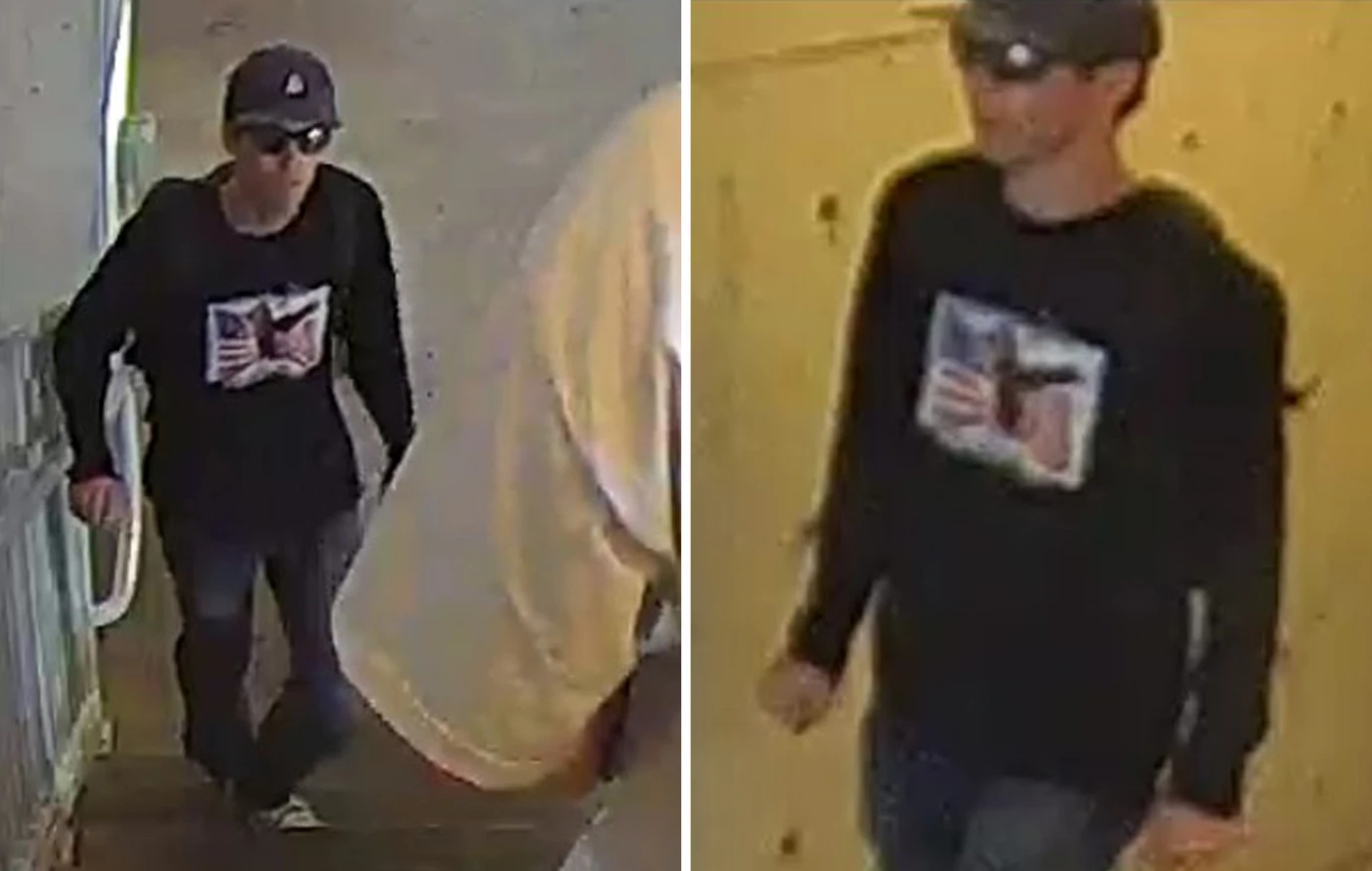 Δύο φωτογραφίες που αναρτήθηκαν στο X δείχνουν ένα άτομο με μαύρα γυαλιά ηλίου, καπέλο μπέιζμπολ, μακρυμάνικη μαύρη μπλούζα και τζιν.