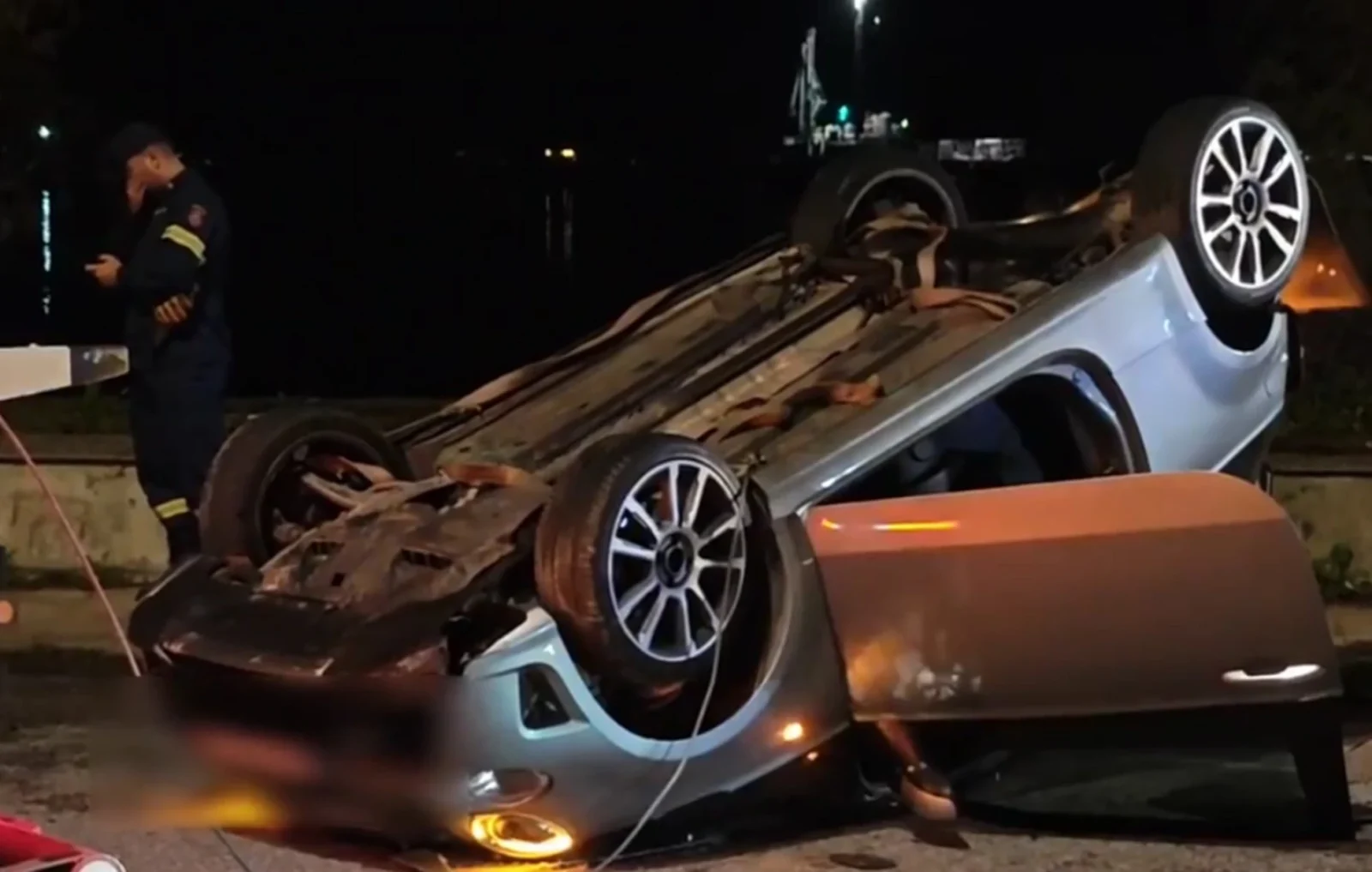 Η σύγκρουση ήταν ιδιαίτερα σφοδρή, με αποτέλεσμα το αυτοκίνητο να ανατραπεί και να υποστεί εκτεταμένες ζημιές, ενώ ο οδηγός του εγκλωβίστηκε στα συντρίμμια.