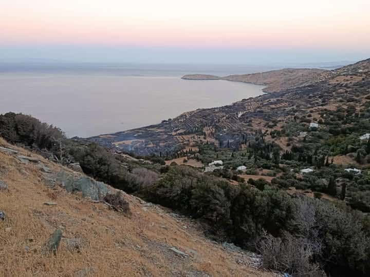 Η πρώτη φωτογραφία από την Κάτω Παλαιόπολη της Άνδρου καταγράφει το αποτύπωμα της μεγάλης φωτιάς που ξέσπασε χθες, Δευτέρα 16 Σεπτεμβρίου, καταστρέφοντας αγροτοδασική ζώνη στον κάμπο και τον αρχαιολογικό χώρο μεταξύ Κυρά Ελεούσας και Κόλυμπου.