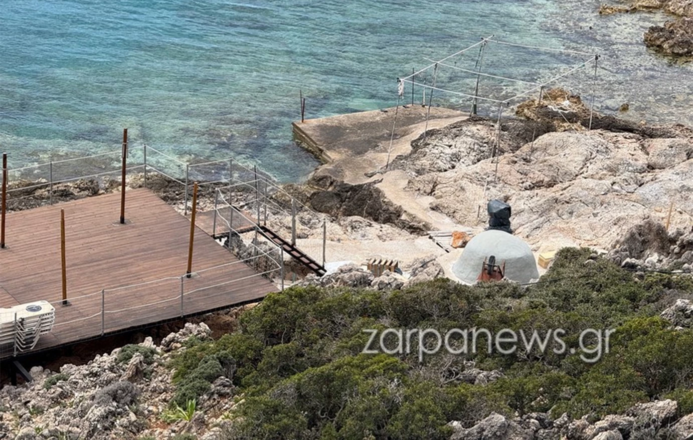 Σφοδρές αντιδράσεις έχει προκαλέσει η μεταλλική εξέδρα που έχει «ξεφυτρώσει» πάνω στα βράχια, σε μια από τις πιο αγνές περιοχές του νομού Χανίων, στο δυτικό τμήμα της χερσονήσου Ροδωπού.