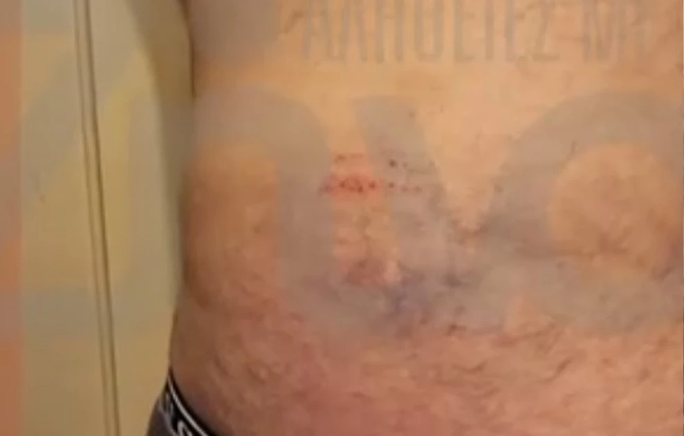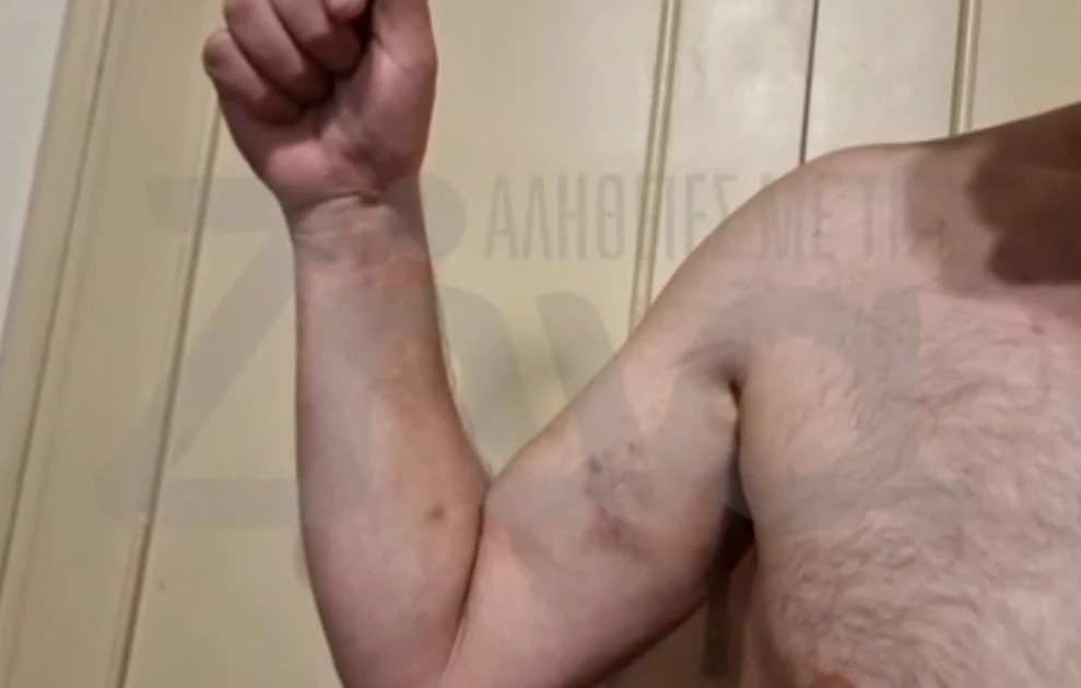 Επίσης, έδωσε στη δημοσιότητα φωτογραφίες με μώλωπες και χαρακιές στο σώμα του, υποστηρίζοντας ότι είναι σημάδια από την επίθεση των αστυνομικών.