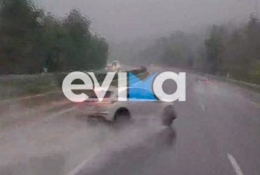 Η στιγμή που οδηγός χάνει τον έλεγχο εν μέσω βροχής και πέφτει πάνω στις μπάρες της Εθνικής (βίντεο)