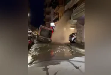 Απορριμματοφόρο έπεσε σε λακκούβα, έσπασε αγωγό νερού και πλημμύρισε διπλανή πολυκατοικία