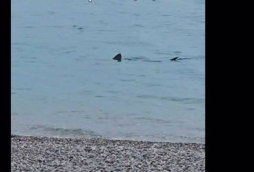 Λουτράκι: Kαρχαρίας κολυμπάει σε ρηχά νερά δίπλα στην παραλία