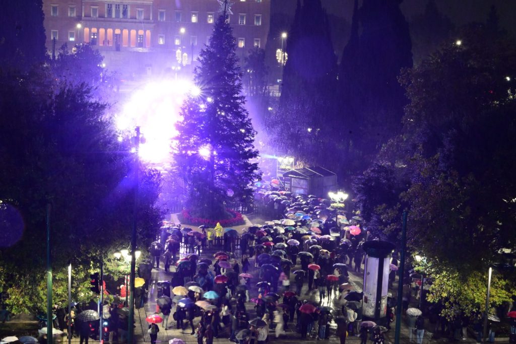 Με μια παρέλαση της μπάντας του Δήμου Αθηναίων, που ξεκίνησε από το Μοναστηράκι, διέσχισε την Ερμού και κατέληξε στο Σύνταγμα ξεκίνησαν οι εκδηλώσεις για τη φωταγώγηση του μεγάλου χριστουγεννιάτικου δέντρου στο Σύνταγμα. Πάρα το ψιλόβροχο ο κόσμος στο Σύνταγμα κατά είναι πολύς και συνεχώς έρχονται περισσότεροι πολίτες κάθε ηλικίας. Ήδη, η γιορτή έχει ξεκινήσει από τις 17:00 με χριστουγεννιάτικες μελωδίες από τη Big Band του Δήμου Αθηναίων.