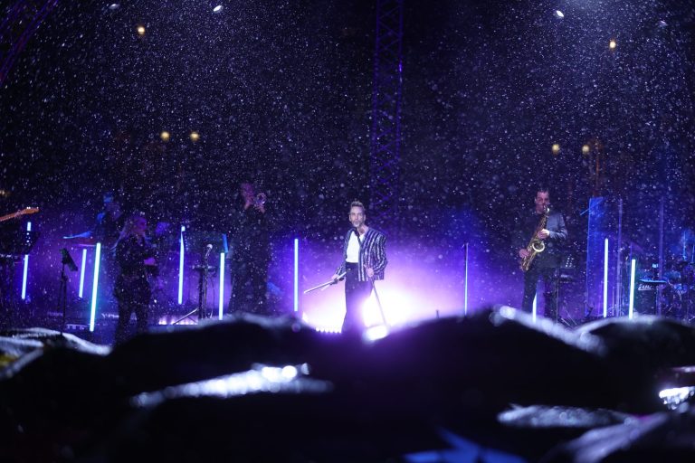 Μετά το άναμμα του δέντρου θα συνεχιστεί η συναυλία του Πάνου Μουζουράκη έως τις 20:30.