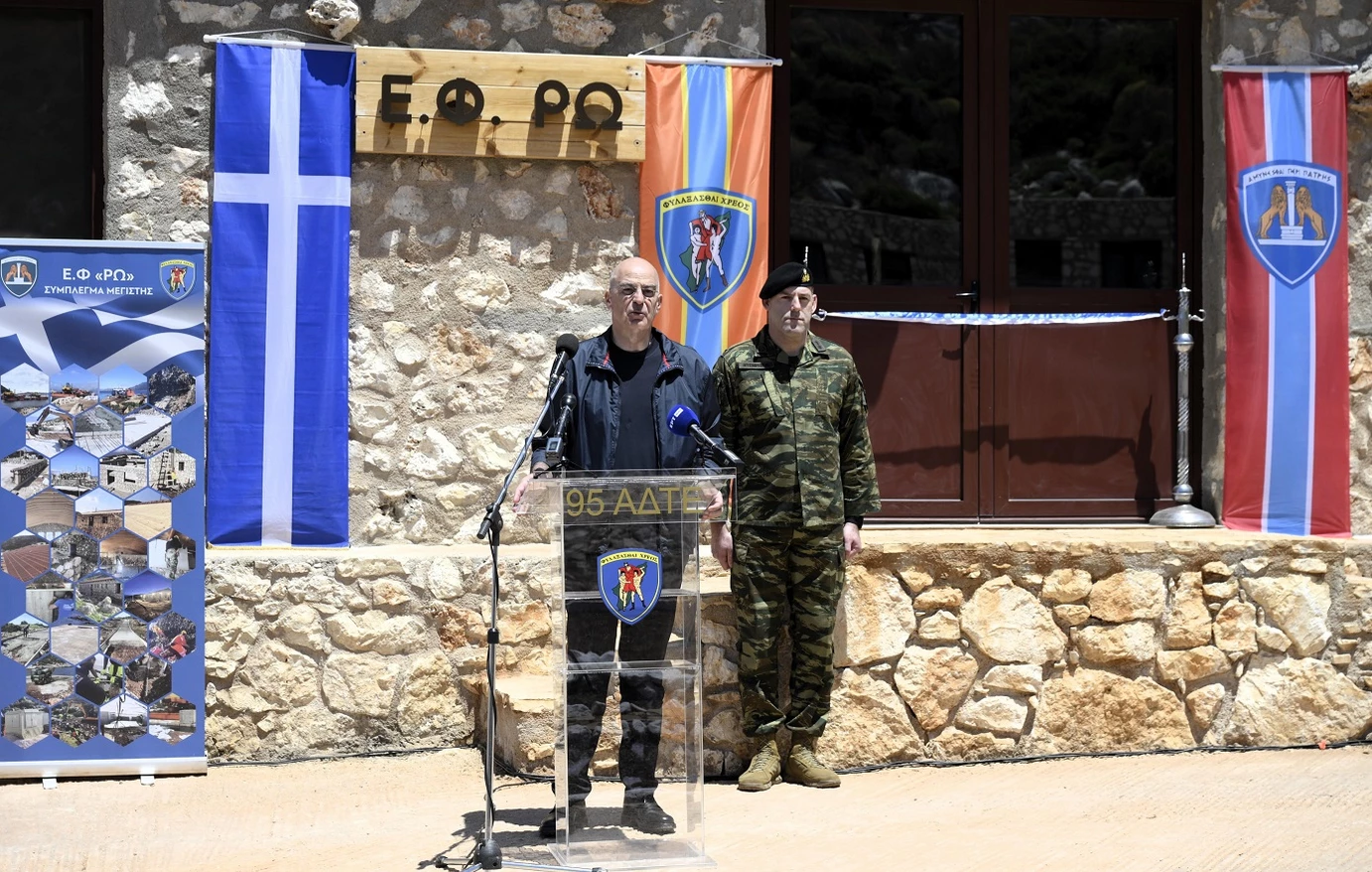 Στη συνέχεια, ο κ. Δένδιας επισκέφτηκε την έδρα της Δυνάμεως Αμύνης Νήσου (ΔΑΝ) Μεγίστης, όπου περιηγήθηκε στις εγκαταστάσεις της.