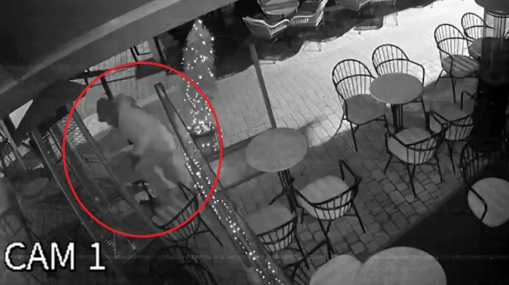 Την Δευτέρα, περίπου στη μια μετά τα μεσάνυχτα, η κάμερα τον κατέγραψε ενώ έχει κάνει την κλοπή και επιχειρεί να κατέβει από την τέντα της καφετέριας. Η προσγείωση του είναι κάπως.. ανώμαλη μιας και βρίσκεται στο έδαφος και του πέφτουν κάποια κέρματα τα οποία μαζεύει και στη συνέχεια αποχωρεί.