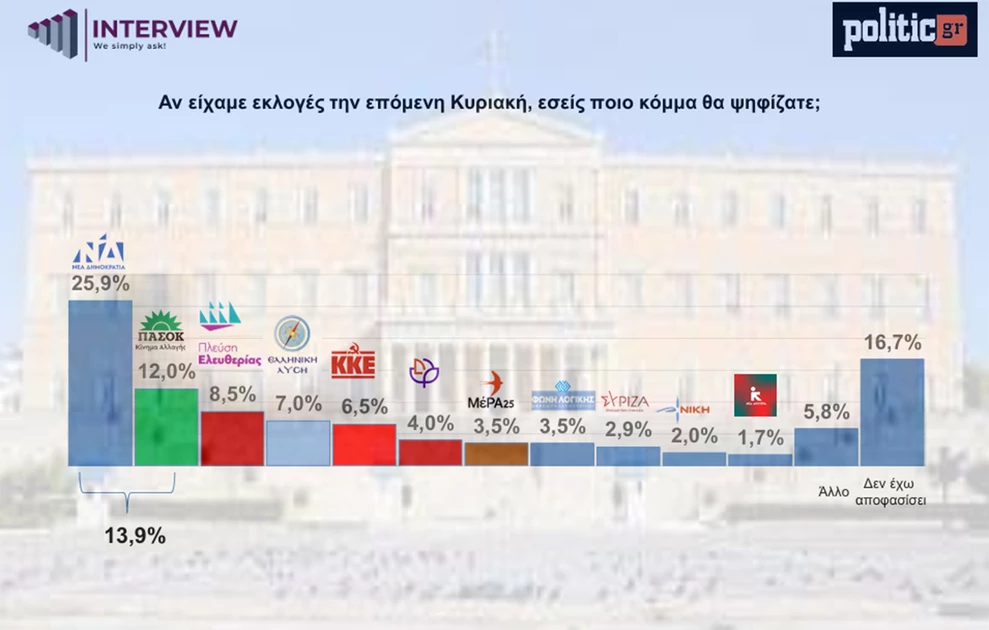 Ιδιαίτερο ενδιαφέρον παρουσιάζει η σημαντική αύξηση των αναποφάσιστων, οι οποίοι φτάνουν στο 16,7% έναντι 13,8% τον Μάιο. Η ενίσχυση αυτού του ποσοστού αποτυπώνει τη βαθιά αμφιταλάντευση των πολιτών, τη ρευστότητα του πολιτικού σκηνικού και την αδυναμία των κομμάτων να πείσουν.