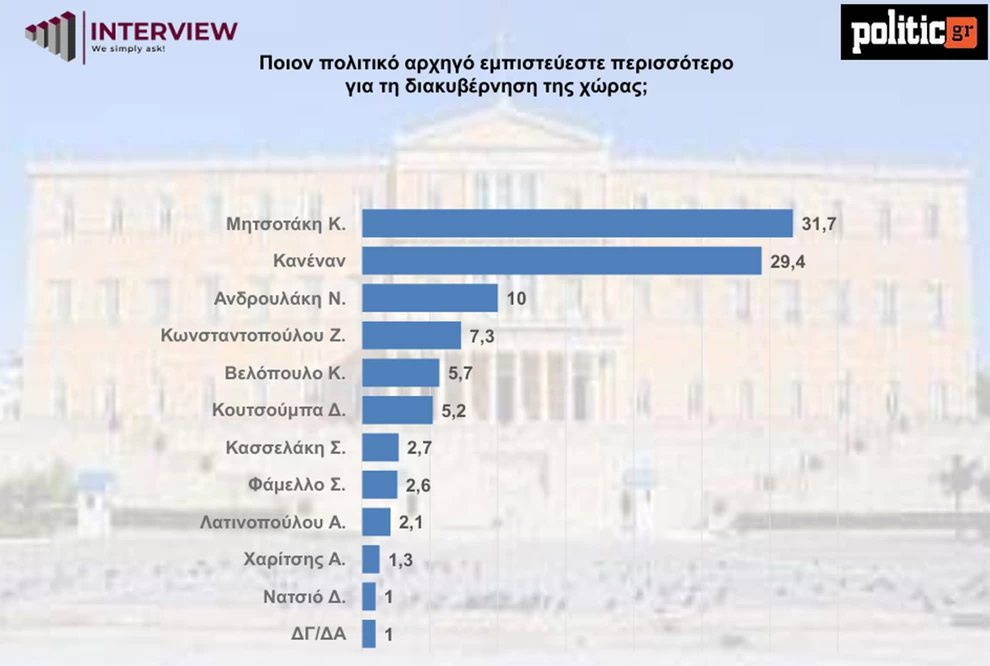 Πολιτικοί αρχηγοί: Ο Μητσοτάκης διατηρεί την πρωτιά – Πολλοί πολίτες δεν εμπιστεύονται κανέναν