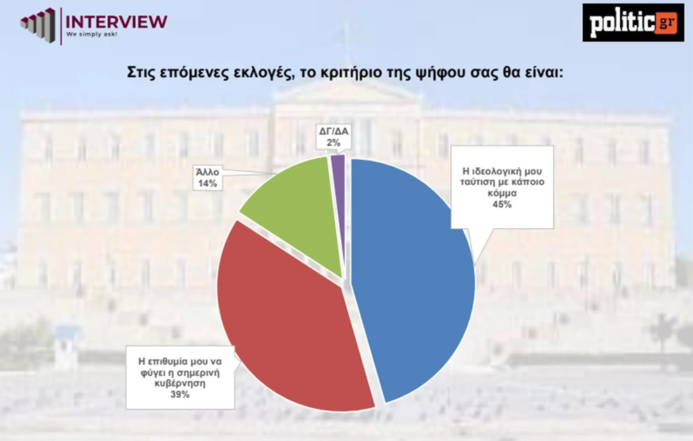 Στις επόμενες εκλογές, το 39% των πολιτών δηλώνει ότι θα ψηφίσει με βασικό κριτήριο την απομάκρυνση της παρούσας κυβέρνησης.