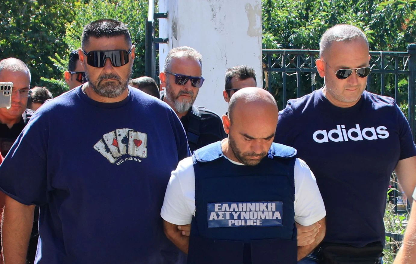Ο 40χρονος γυναικοκτόνος οδηγήθηκε υπό δρακόντεια μέτρα ασφαλείας στο δικαστικό μέγαρο του Βόλου. Με σκυμμένο το κεφάλι, αμίλητος και φορώντας αλεξίσφαιρο γιλέκο οδηγήθηκε στον εισαγγελέα.