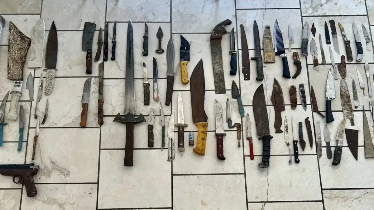Μπροστά σε ένα ολόκληρο οπλοστάσιο αποτελούμενο από μαχαίρια, σπαθιά, ξιφίδια, σπαθιά, ομοίωμα πιστολιού, σιδηρογροθιά, τσεκούρι και άλλα, βρήκαν οι αστυνομικοί στο σπίτι του δράστη της άγριας δολοφονίας του 59χρονου ιδιοκτήτη καφετέριας στη Λαμία τα ξημερώματα της Δευτέρας (23.06.2025).