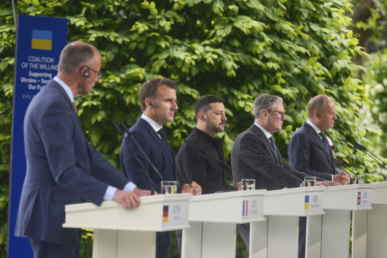«Είμαστε ξεκάθαροι και οι 5 ηγέτες εδώ και όλοι οι ηγέτες που συμμετείχαν στη διάσκεψη της συμμαχίας των προθύμων, για μια άνευ όρων κατάπαυση πυρός, απορρίπτοντας τους όρους του Πούτιν, και ξεκάθαροι ότι αν γυρίσει την πλάτη στην ειρήνη θα απαντήσουμε», τόνισε ο πρωθυπουργός της Μ. Βρετανίας, Κιρ Στάρμερ.