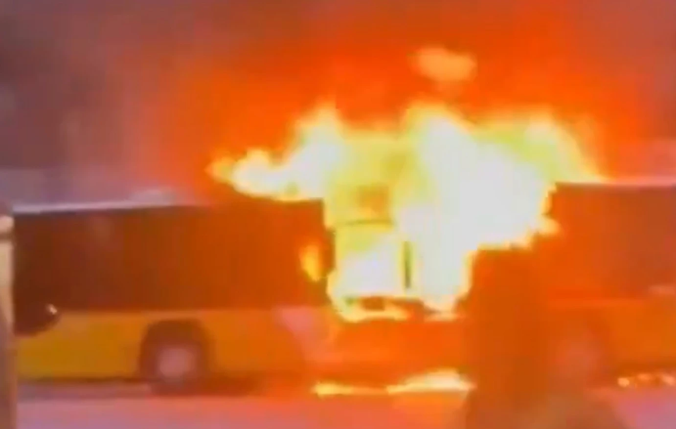 Όταν οι πυροσβέστες έφτασαν στο σημείο, το λεωφορείο είχε σχεδόν μετατραπεί σε ένα καμένο κουφάρι.