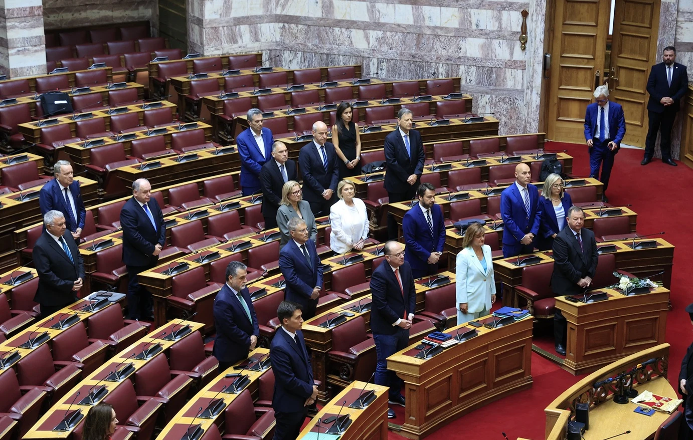 Με ένα μπουκέτο λουλούδια στο έδρανό του και ενός λεπτού σιγή σήμερα το πρωί, η Ολομέλεια τίμησε την μνήμη του πρώην γενικού γραμματέα της ΝΔ, πρώην υφυπουργού Οικονομικών και βουλευτή Ημαθίας Απόστολου Βεσυρόπουλου που έφυγε από τη ζωή μετά από ανακοπή καρδιάς την Πέμπτη 21 Αυγούστου 2025.
