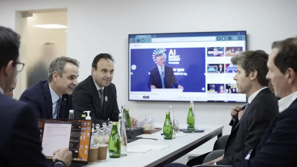 Ο Κυριάκος Μητσοτάκης συναντήθηκε με τον διευθύνοντα σύμβουλο της OpenAI Σαμ Άλτμαν, τον επικεφαλής της Mistral AI Αρτούρ Μενς, τον CEO της ElevenLabs Μάτι Στανίσεφσκι και τον αντιπρόεδρο της Microsoft Μπραντ Σμιθ. Στο επίκεντρο των συζητήσεων βρέθηκαν δυνατότητες συνεργασίας που συνδέονται με την αναβάθμιση υπηρεσιών μέσω της πύλης gov.gr και, κυρίως, με τη βελτίωση της προσβασιμότητας, ώστε να εξυπηρετούνται καλύτερα πολίτες που δεν είναι εξοικειωμένοι με το διαδίκτυο, όπως ηλικιωμένοι και άτομα με αναπηρία. Παράλληλα, εξετάστηκαν εφαρμογές Τεχνητής Νοημοσύνης που θα μπορούσαν να αυξήσουν την αποτελεσματικότητα των δημόσιων υπηρεσιών, να ενισχύσουν τη δημόσια υγεία, τη δημόσια παιδεία και την πολιτική προστασία, αλλά και να επιταχύνουν διαδικασίες στην απονομή δικαιοσύνης.