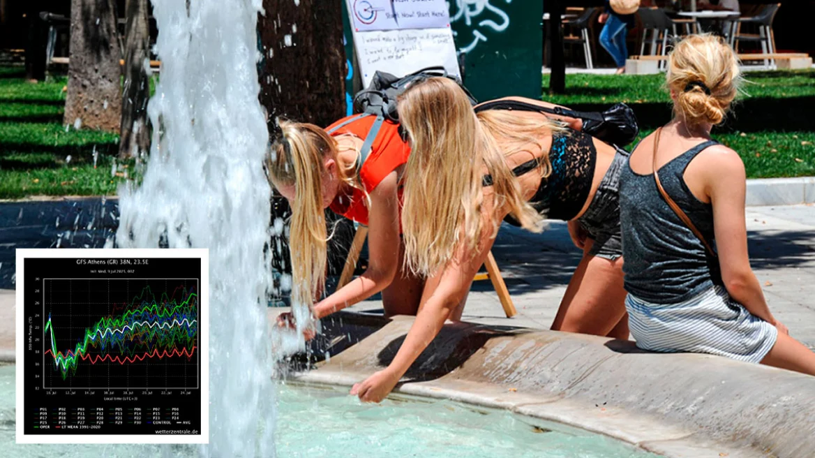 Σύμφωνα με τον μετεωρολόγο Γιάννη Τσατραφυλλιά, από την Κυριακή δύο μεγάλα προγνωστικά κέντρα —το Ευρωπαϊκό (ECMWF) και το Αμερικανικό (GFS)— δίνουν σήμα για ένα νέο θερμό επεισόδιο, που φαίνεται να αποκτά χαρακτηριστικά παρατεταμένης ζέστης.