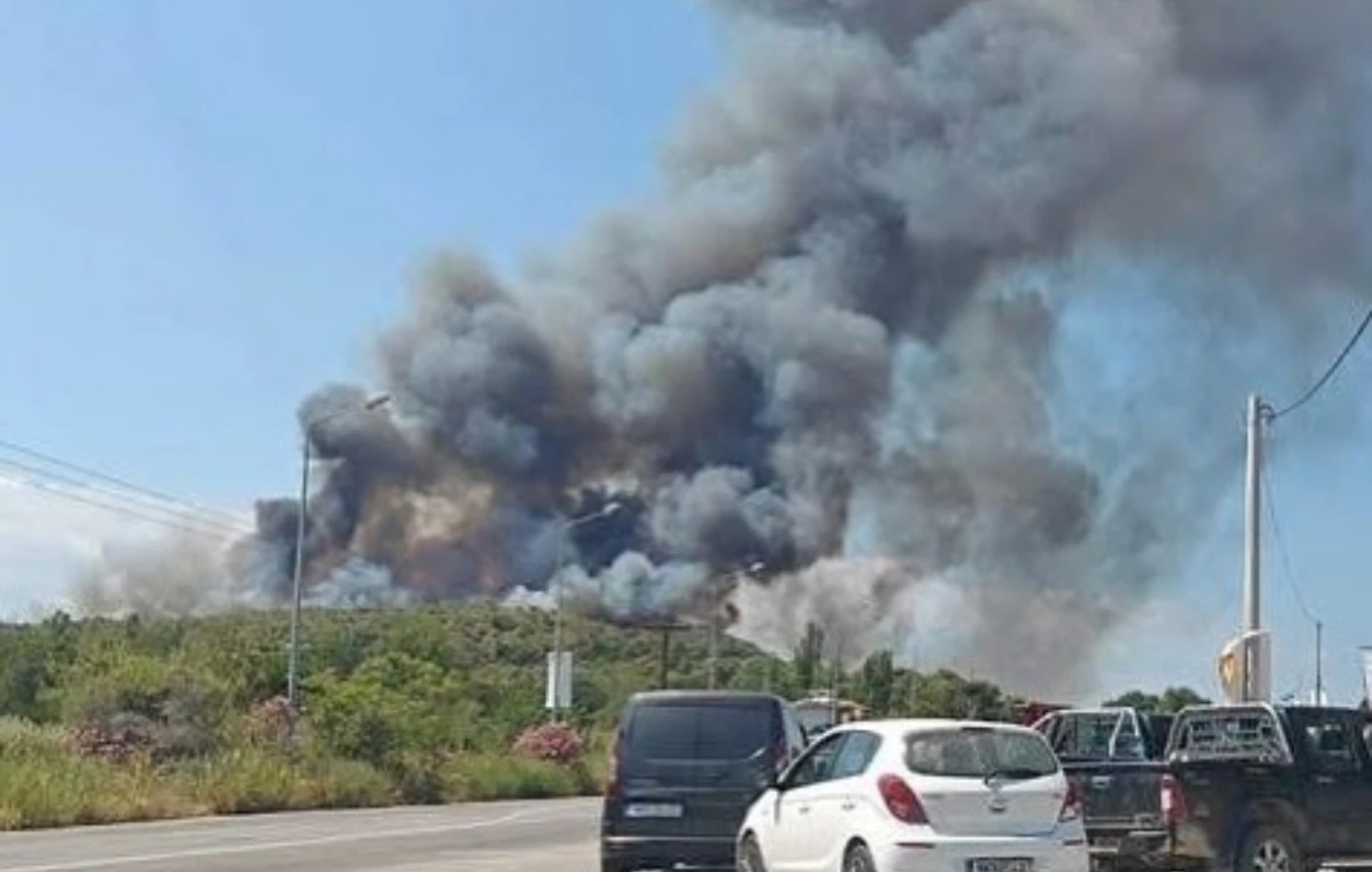 Σύμφωνα με την ΕΡΤ, η φωτιά εκδηλώθηκε στη Βουρβουρού Χαλκιδικής, στην περιοχή Μανδρινιά.