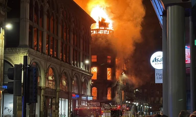 Συναγερμός σήμανε στις Αρχές της Γλασκώβης, καθώς τυλίχθηκε στις φλόγες κτήριο στον κεντρικό σταθμό της πόλης, προκαλώντας μερική κατάρρευσή του, ενώ εκκενώθηκαν ξενοδοχεία, καταστήματα και σπίτια στη γύρω περιοχή.
