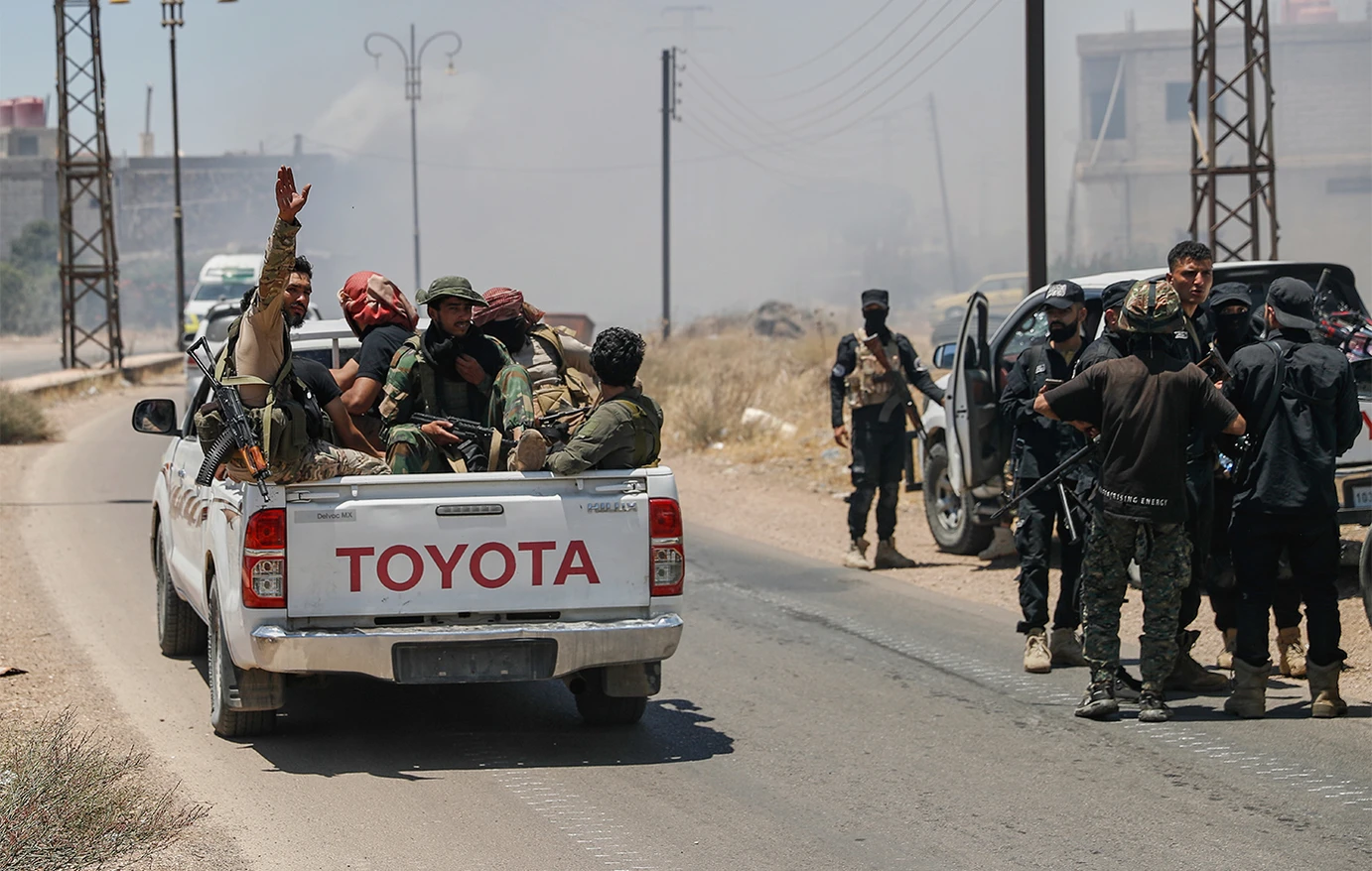 Στη νότια επαρχία Σουάιντα, όπου ζουν κυρίως Δρούζοι, ξέσπασαν τη 13η Ιουλίου εχθροπραξίες ανάμεσα σε δρούζους μαχητές και βεδουίνους σουνίτες ενόπλους, προτού επέμβουν δυνάμεις ασφαλείας των νέων αρχών και μέλη φυλών από άλλες περιοχές της Συρίας που έσπευσαν να ενισχύσουν τους Βεδουίνους.