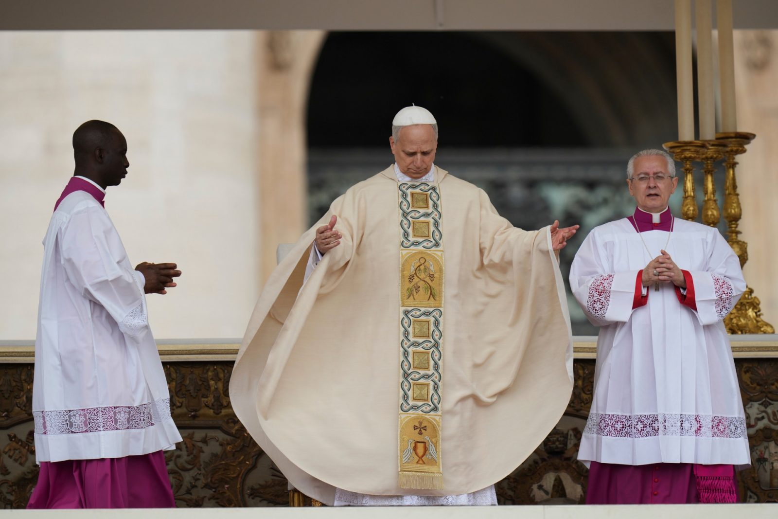 Η τελετή έχει ξεκινήσει στη Βασιλική του Αγίου Πέτρου, με την πομπή να έχει σχηματιστεί και να οδεύει στην πλατεία. Λίγο πριν ο Πάπας Λέων προσευχήθηκε μπροστά από τον τάφο του Αγίου Πέτρου.