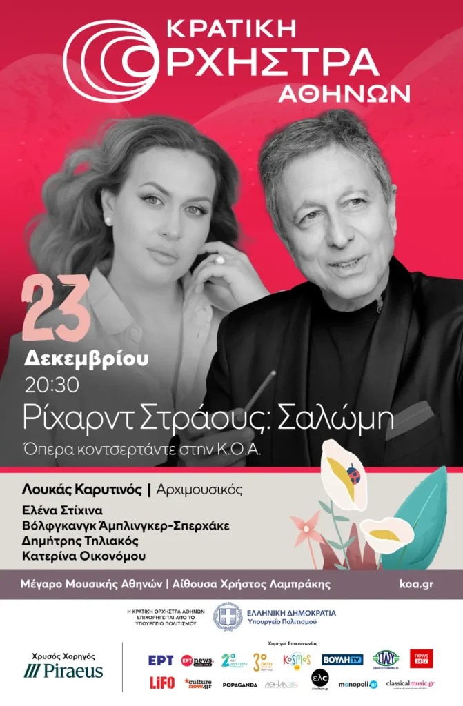Στο πλαίσιο της δημιουργικής συνεργασίας της με την Κρατική Ορχήστρα Αθηνών (Κ.Ο.Α.), η Τράπεζα Πειραιώς υποστηρίζει ως Χρυσός Χορηγός την όπερα «Σαλώμη» του Ρίχαρντ Στράους που βασίζεται στο ομώνυμο θεατρικό έργο του Όσκαρ Ουάιλντ και θα παρουσιαστεί σε συναυλιακή μορφή στο Μέγαρο Μουσικής Αθηνών στις 23 Δεκεμβρίου 2025 υπό την μουσική διεύθυνση του αρχιμουσικού Λουκά Καρυτινού.