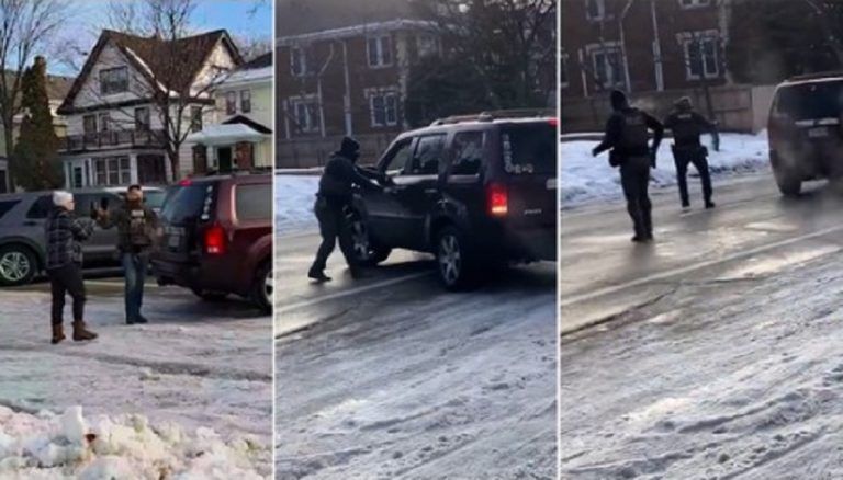 Το νέο βίντεο που δημοσιεύθηκε δείχνει το Honda Pilot της Γκουντ παρκαρισμένο στη μέση ενός δρόμου, εμποδίζοντας την κυκλοφορία.
