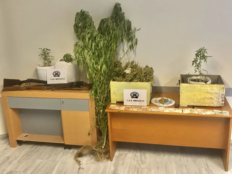Επιπλέον, σε έρευνες που πραγματοποιήθηκαν στην αγροτική περιοχή στην οποία μετέβαινε ο 76χρονος και στην παρακείμενη περιφραγμένη περιοχή ιδιοκτησίας του 48χρονου, καθώς και σε χώρο που διατηρούσε κυψέλες μελισσών, βρέθηκε να καλλιεργείται φυτεία δενδρυλλίων κάνναβης με συνολικά 14 δενδρύλλια πλήρους ανάπτυξης ύψους 2 μέτρων το καθένα, τα οποία και εκριζώθηκαν. Επίσης, βρέθηκαν και κατασχέθηκαν 2 κυψέλες στο εσωτερικό των οποίων υπήρχαν κρυμμένα 8 αποξηραμένα δενδρύλλια κάνναβης και ποσότητα 30 γραμμαρίων κάνναβης.