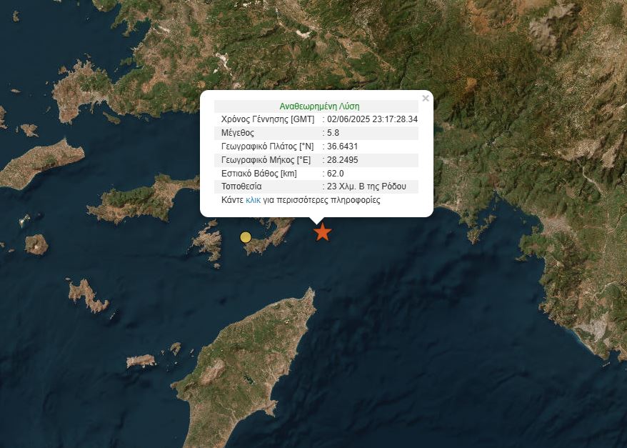 Ισχυρός σεισμός 5,8 Ρίχτερ τα ξημερώματα ανοιχτά της Ρόδου – Καθησυχαστικοί οι σεισμολόγοι