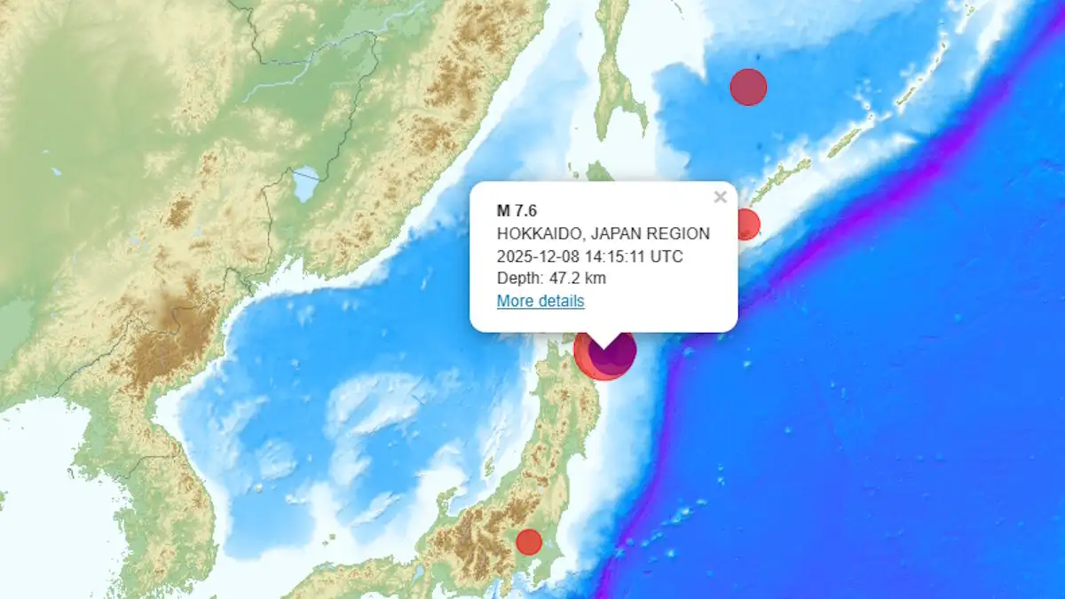 Πολύ δυνατός σεισμός μεγέθους 7,6 Ρίχτερ σημειώθηκε στην Ιαπωνία την Δευτέρα (08.12.2025).