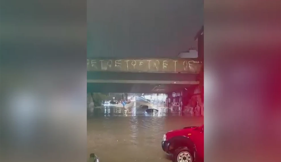 Το δελτίο ειδήσεων του OPEN μετέδωσε πλάνα, στα οποία διακρίνεται να έχει πλημμυρίσει από κάτω η γέφυρα στη Σπύρου Λούη και αμάξια να έχουν βυθιστεί στο νερό.