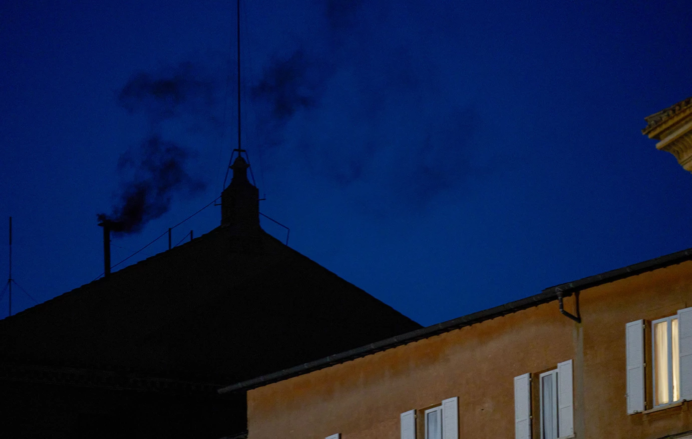 Μαύρος καπνός βγήκε από την καμινάδα της Καπέλα Σιξτίνα, μετά την πρώτη ψηφοφορία για νέο Πάπα.