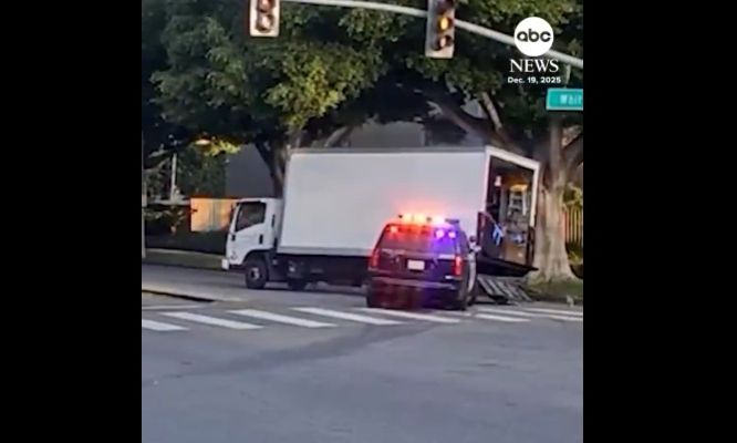 Newly released footage shows the end of a police chase in Southern California, with authorities seen using their vehicles to stop an allegedly stolen box truck. The suspect attempted to flee on foot but was quickly apprehended by officers in Beverly Hills. https://t.co/ulCiSzPVZr pic.twitter.com/JKDZXhNuqI