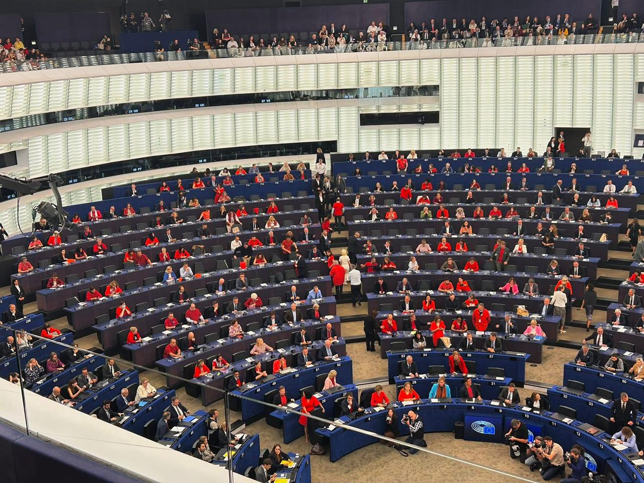 Λίγο πριν από την ομιλία της Ούρσουλα Φον ντερ Λάιεν για την Κατάσταση της Ένωσης, σημειώθηκε έντονη διαμαρτυρία στην ολομέλεια του Ευρωπαϊκού Κοινοβουλίου. Ευρωβουλευτές της Left, των Σοσιαλιστών και των Πρασίνων σηκώθηκαν όρθιοι στα έδρανά τους, εκφράζοντας την αντίθεσή τους στην πολιτική της Ευρωπαϊκής Επιτροπής απέναντι στην παλαιστινιακή κρίση.