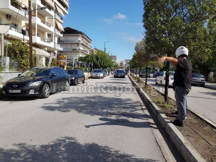 Το τροχαίο έγινε λίγο μετά τη 1:00′ το μεσημέρι στην οδό Κύπρου, ακριβώς έξω από το αμαξοστάσιο του Δήμου Λαμιέων.