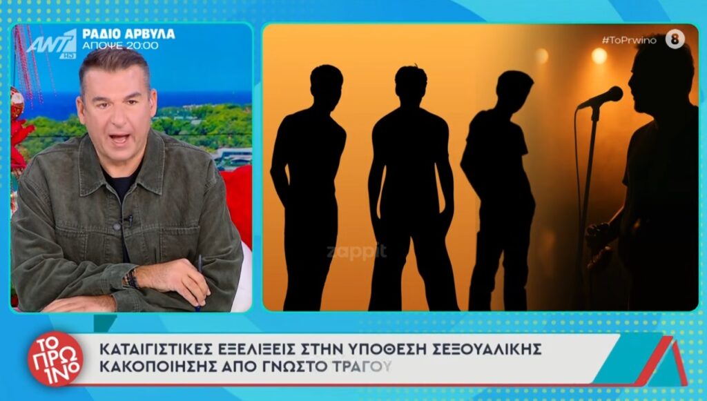 Χτες το βράδυ (15-12-2025), ο τραγουδιστής και ο δικηγόρος του έκαναν μια μακρά σύσκεψη για το πώς θα προχωρήσουν. Αύριο θα κατατεθεί μήνυση από τον έναν για ασέλγεια στον πολύ γνωστό τραγουδιστή. Σε λίγο θα σας πω τι ετοιμάζονται να καταγγείλουν. Δεν μιλάμε για βιασμό, αλλά για ασελγείς πράξεις. Ο τραγουδιστής θεωρεί πως κυριαρχεί κάποιος εκβιασμός», ανέφερε ο Γιώργος Λιάγκας στην έναρξη της εκπομπής.