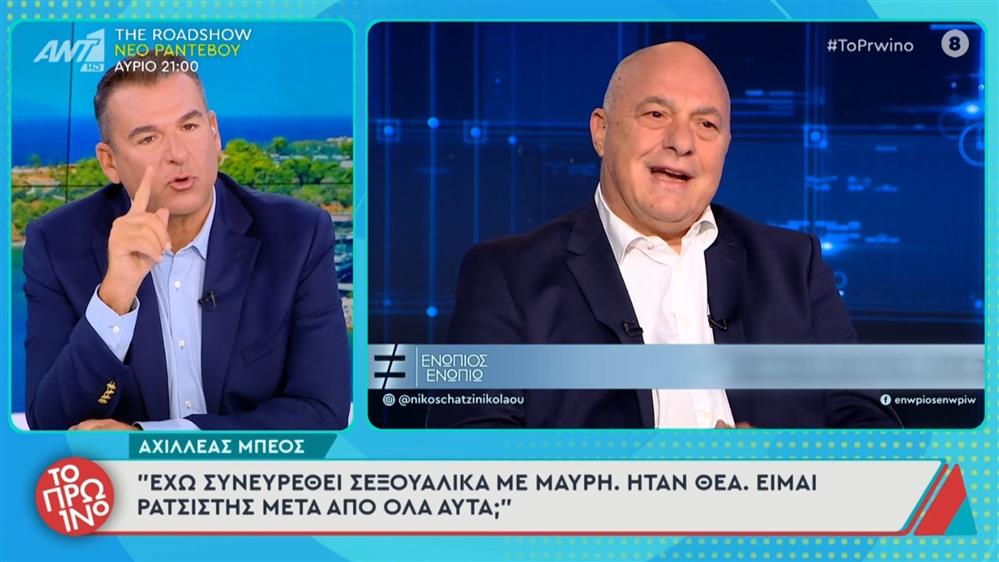 Αντιδράσεις προκάλεσε η δήλωση του Αχιλλέα Μπέου στο “Ενώπιος Ενωπίω” και τον Νίκο Χατζηνικολάου για το αν είναι ρατσιστής.