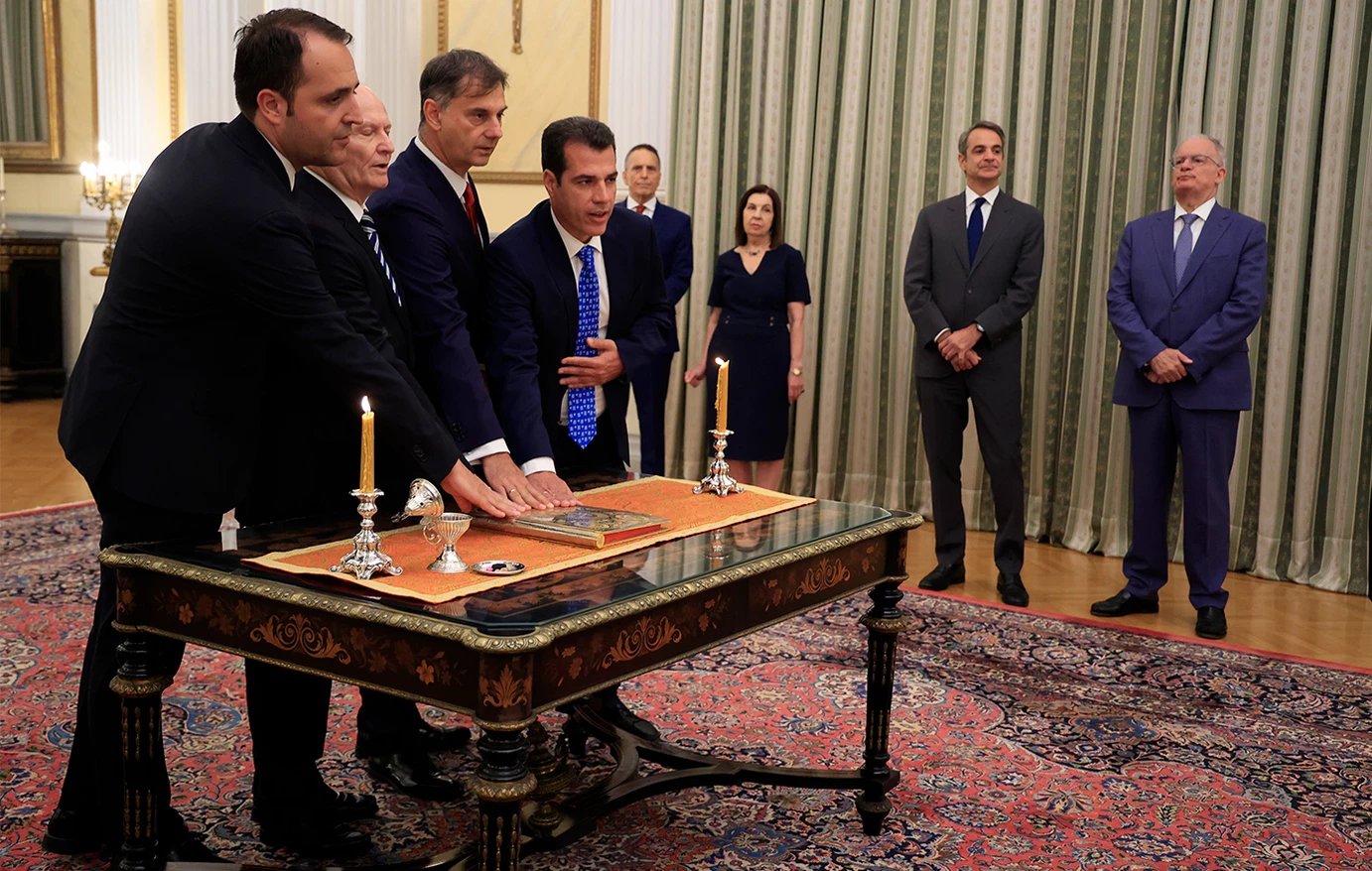 Ο Θάνος Πλεύρης ως υπουργός Μετανάστευσης και Ασύλου, ως υφυπουργός Εξωτερικών ο Χάρης Θεοχάρης, ως υφυπουργός Αγροτικής Ανάπτυξης και Τροφίμων ο Γιάννης Ανδριανός και ως υφυπουργός Ψηφιακής Διακυβέρνησης ο Χρήστος Δερμεντζόπουλος.