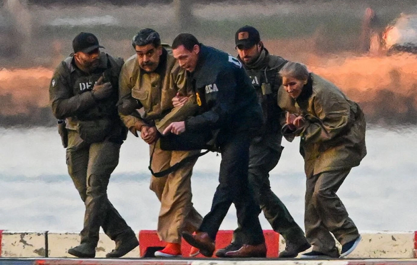 Φορώντας χειροπέδες και τη χαρακτηριστική φόρμα κρατουμένου, ο πρόεδρος της Βενεζουέλας, Νικολάς Μαδούρο, μεταφέρθηκε με ελικόπτερο και θωρακισμένο όχημα στο ομοσπονδιακό δικαστήριο της Νέας Υόρκης, όπου παρουσιάστηκε ενώπιον δικαστή μαζί με τη σύζυγό του.