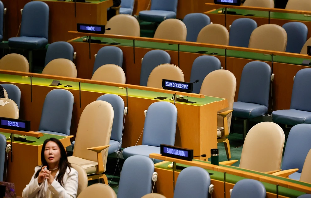Σε μια σχεδόν άδεια αίθουσα της Γενικής Συνέλευσης του ΟΗΕ, μίλησε ο Ισραηλινός πρωθυπουργός Μπενιαμίν Νετανιάχου, καθώς μόλις το όνομά του ανακοινώθηκε ως επόμενου ομιλητή δεκάδες ήταν οι διπλωμάτες χωρών που αποχώρησαν από την αίθουσα.