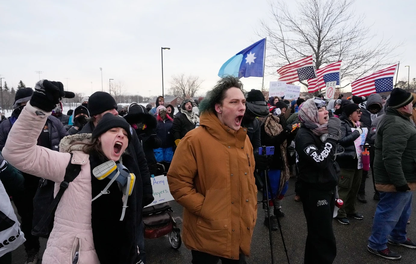 Εκατοντάδες πολίτες διαμαρτυρήθηκαν κατά της ICE και απέκλεισαν μικρή ομάδα ακροδεξιών που ήθελε να πραγματοποιήσει πορεία σε γειτονιά με πολλούς μετανάστες, εν μέσω έντασης στη Μινεσότα μετά τον θάνατο της Ρενέ Γκουντ.