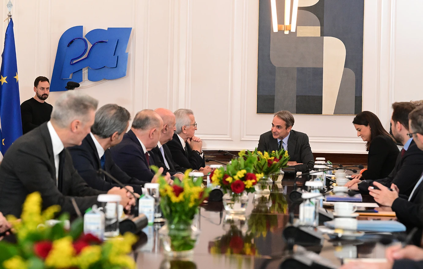 Την ικανοποίησή του για τη συμφωνία ανάμεσα στην κυβέρνηση και τους κοινωνικούς εταίρους εξέφρασε ο πρωθυπουργός στη σύσκεψη με την υπουργό Εργασίας και Κοινωνικής Ασφάλισης, Νίκη Κεραμέως, και εκπροσώπους των Εθνικών Κοινωνικών Εταίρων, στο Μέγαρο Μαξίμου, με αφορμή την Κοινωνική Συμφωνία για τις Συλλογικές Συμβάσεις Εργασίας.