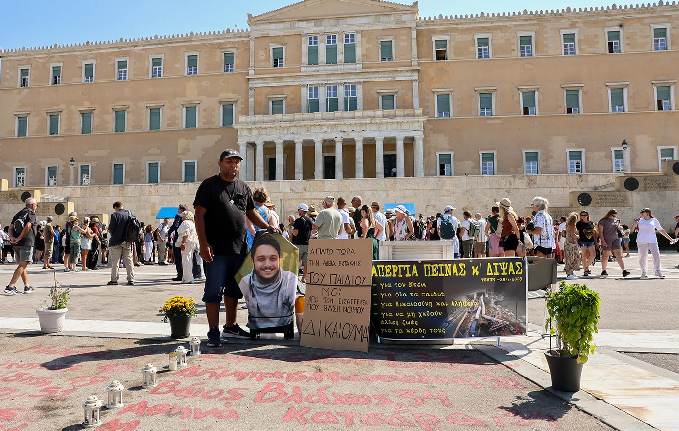 Απεργία πείνας πραγματοποιεί έξω από τη Βουλή ο Πάνος Ρούτσι, πατέρας του 22χρονου Ντένις που έχασε τη ζωή του στο σιδηροδρομικό δυστύχημα των Τεμπών ζητώντας να γίνει εκταφή της σορού του παιδιού του.