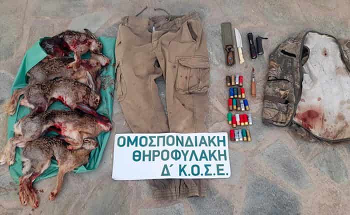 Σύμφωνα με το cycladeslive.gr, δύο άνδρες, ηλικίας 26 και 59 ετών, εντοπίστηκαν να θηρεύουν λαγούς με φακούς και πυροβόλο όπλο σε απαγορευμένη περίοδο, χωρίς άδεια κυνηγιού.