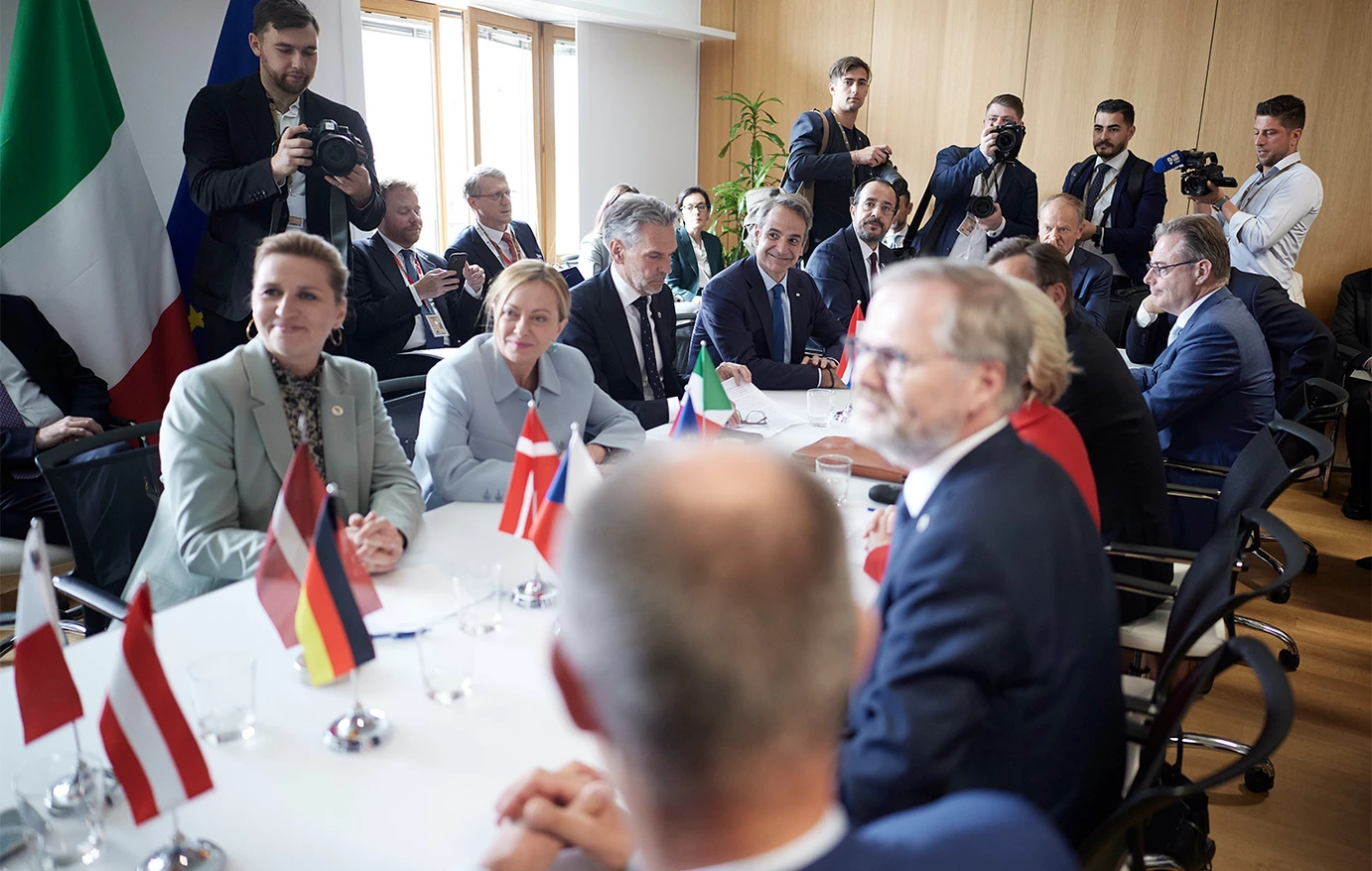 Πριν από την έναρξη των εργασιών του Ευρωπαϊκού Συμβουλίου, ο πρωθυπουργός Κυριάκος Μητσοτάκης μετείχε σε άτυπη συνάντηση ηγετών για το μεταναστευτικό στα γραφεία της Ιταλίας.